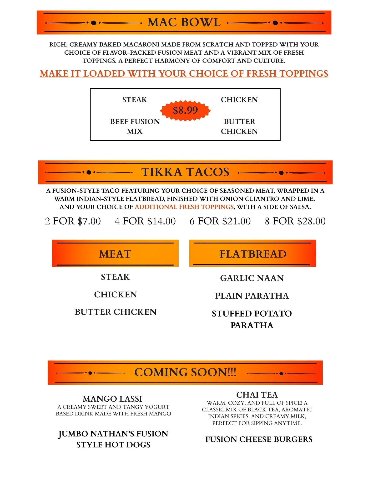 Our Menu
